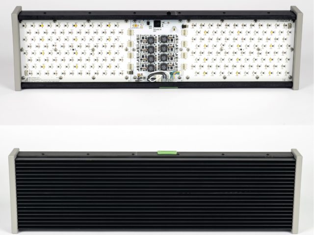 The first Rutgers experiment required 1 light in a small, single growth chamber. The Agile Spectrum design does not include a fan for cooling, as it has a robust heat sink providing passive heat transfer. As such, sufficient air circulation within the chamber is essential, as is normally the case. The capability to remotely locate the DC power supply allows for reduced thermal load on the growth chamber/vegetation and also minimizes environmental cooling requirements by approximately 10%. Of course, this reduced thermal load within the thermal chamber reduces overall chamber operating costs.